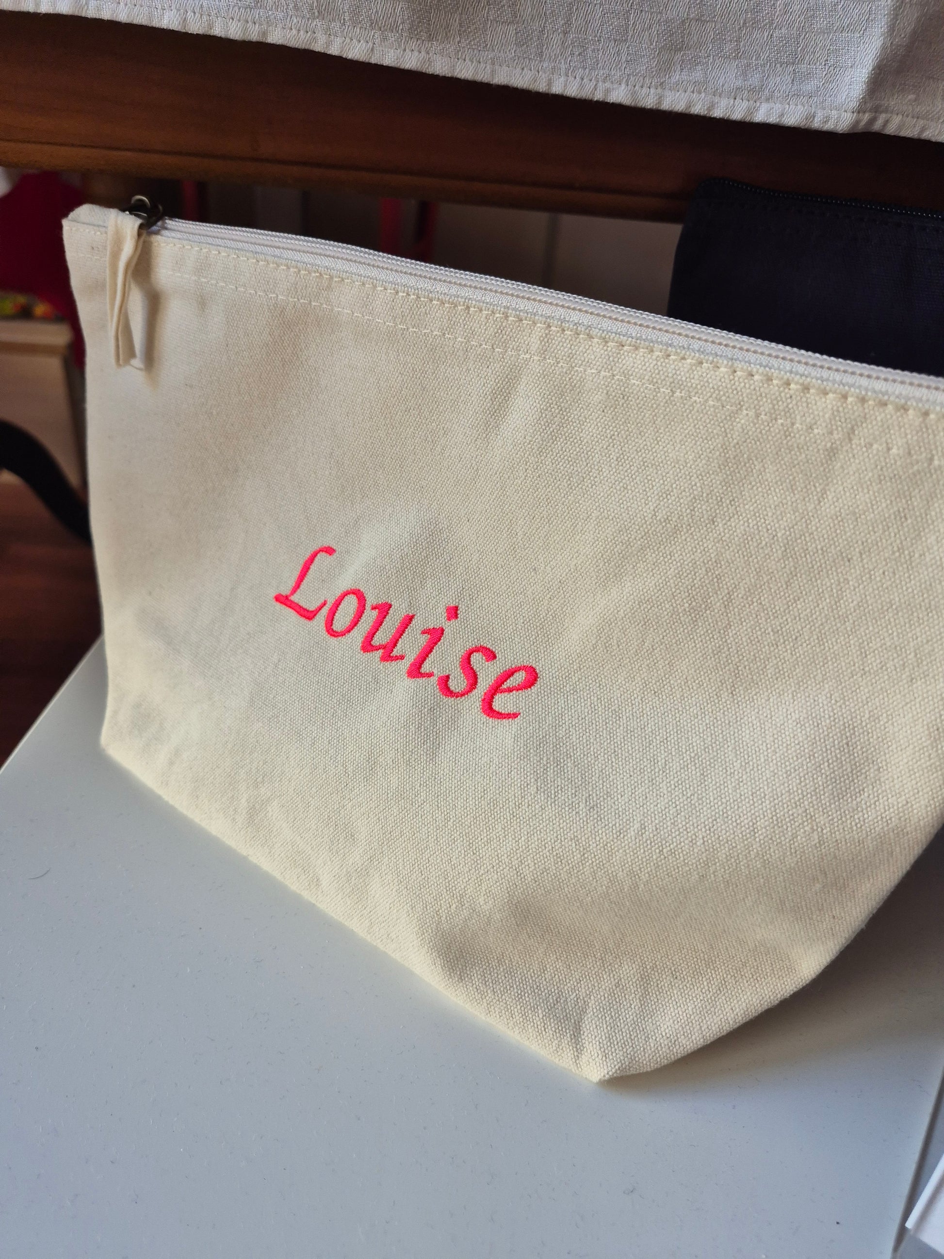 Notre pochette personnalisée, brodée au prénom ou à un mot doux, est le cadeau idéal pour toutes les occasions : anniversaire, Noël, maîtresse, nounou, mariée, témoin, ou juste pour se faire plaisir.